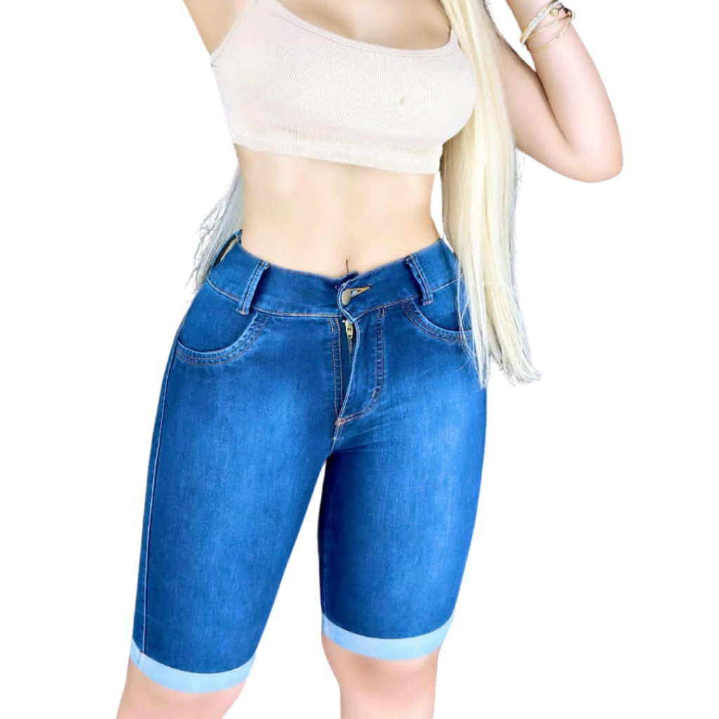Bermuda Feminina Jeans Meia Coxa Lycra: Conforto e Estilo - Pronta Entrega - Enviamos para todo o Brasil - Direto da Fábrica - Fotos Reais - Tecido, Modelagem e Acabamento Premium - Composição: 98% Algodão 2% Elastano - Ano de Lançamento: 2023 - Modelo: Cintura Alta, Cós Alto, levanta o bumbum. - Cor: MEDIDAS DA CINTURA, QUADRIL E COMPRIMENTO: Tamanho 36 - C.72 cm / Q.86 cm / Comp.36 Cm. Tamanho 38 - C.74 cm / Q.88 cm / Comp.37 Cm Tamanho 40 - C.76 cm / Q.90 cm / Comp.37 Cm Tamanho 42 - C.80 cm / Q.94 cm / Comp.37 Cm Tamanho 44 - C.86 cm / Q.94 cm / Comp.37 Cm Tamanho 46 - C.88 cm / Q.98 cm / Comp.38 Cm. Tamanho 48 - C.90 cm / Q.102 cm / Comp.39 Cm.