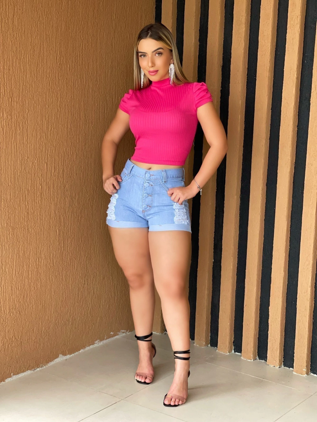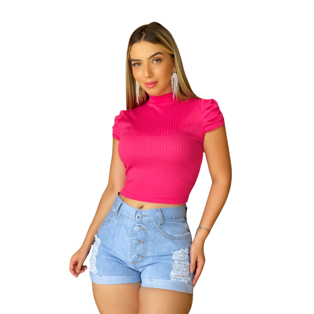 Blusa Feminina Curta Canelada Princesa Cor Rosa: Pink Style