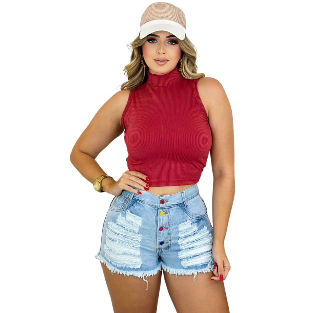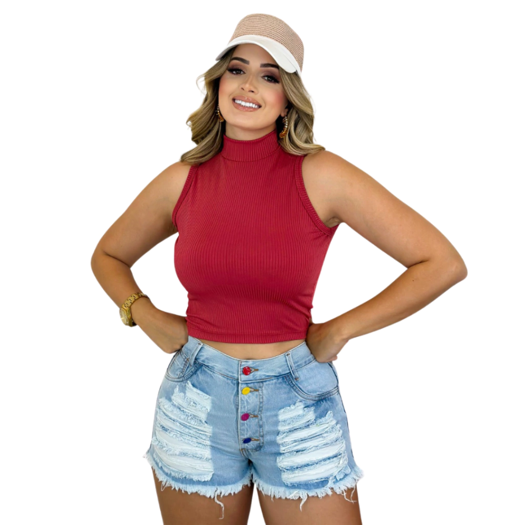 Blusinha com Gola Alta Sem Mangas Vermelha: Red Fashion