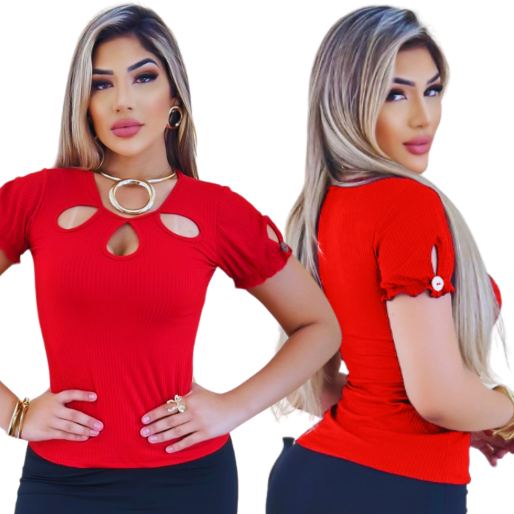 Aposte no conforto e na beleza! Não perca a chance de brilhar com a Blusa com Detalhes no Decote e Mangas com Babadinho. Disponível em diversas cores.
