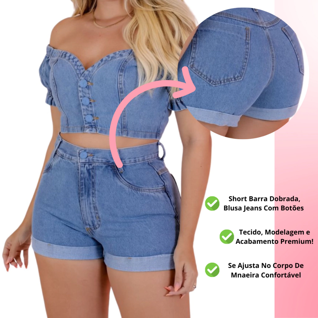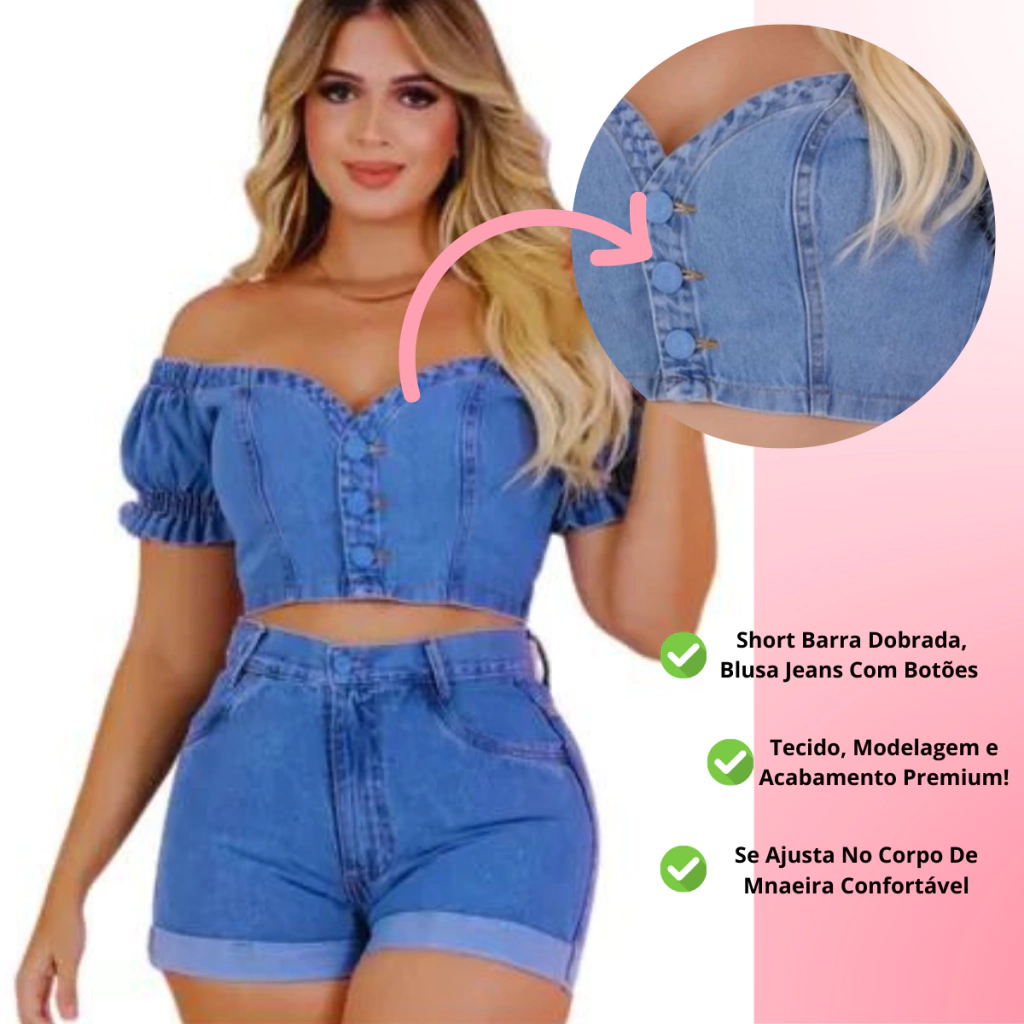 - Modelo: CONJUNTO JEANS - CROPPED + SHORT JEANS