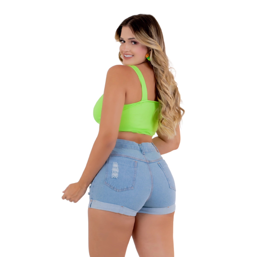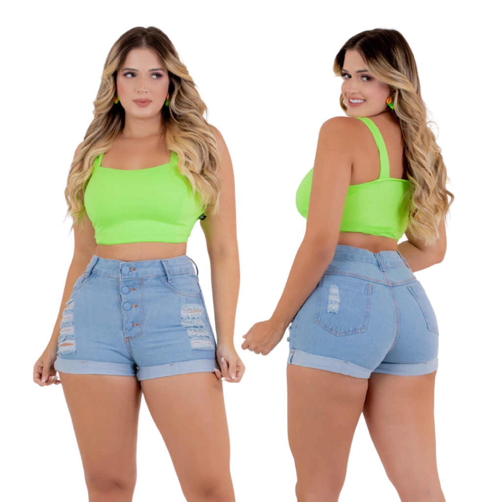 Short Jeans Feminino Cintura Alta Modelo Detonado, são especialmente desenvolvidas para Mulheres modernas e empoderadas. Com uma modelagem diferenciada que se ajusta ao corpo de maneira confortável.