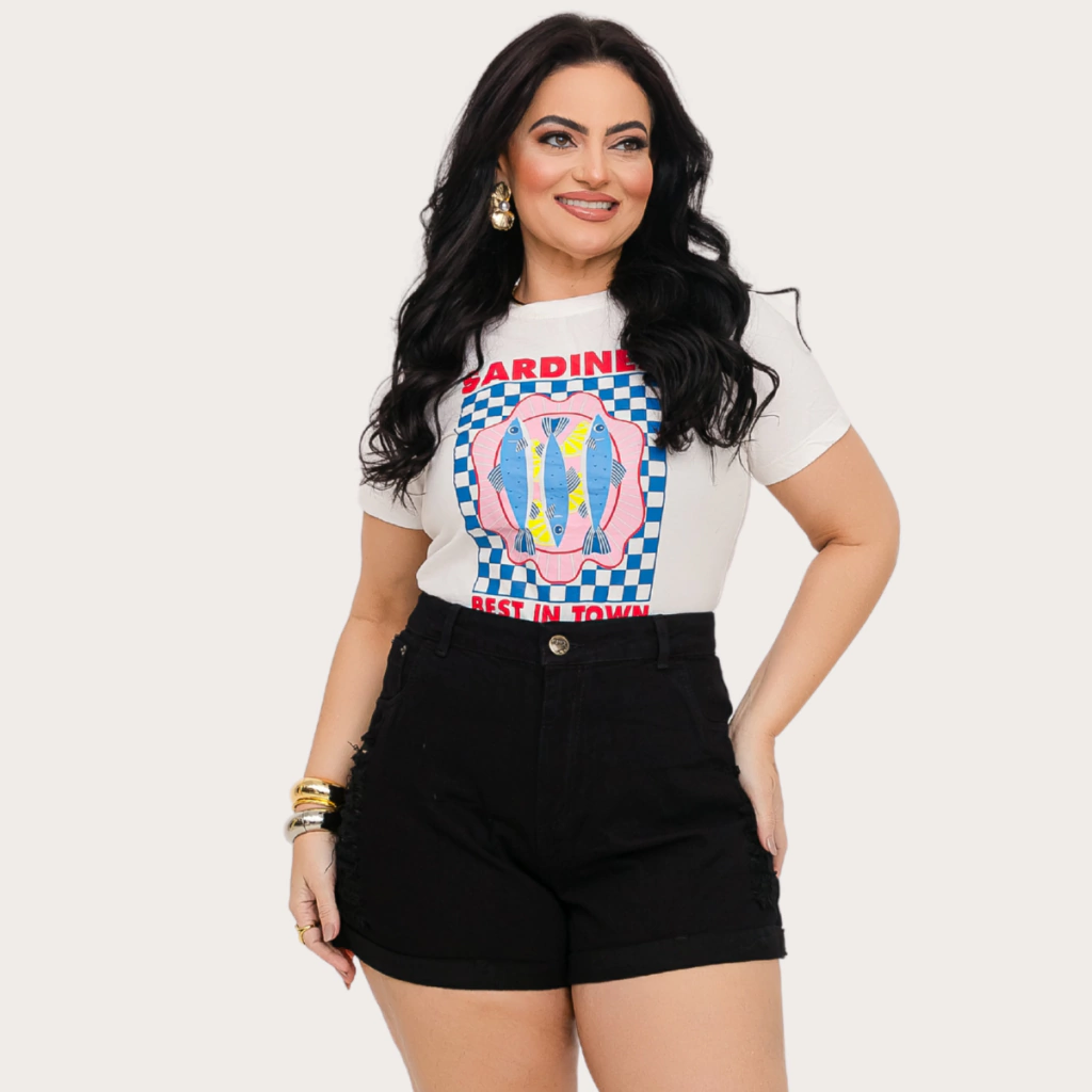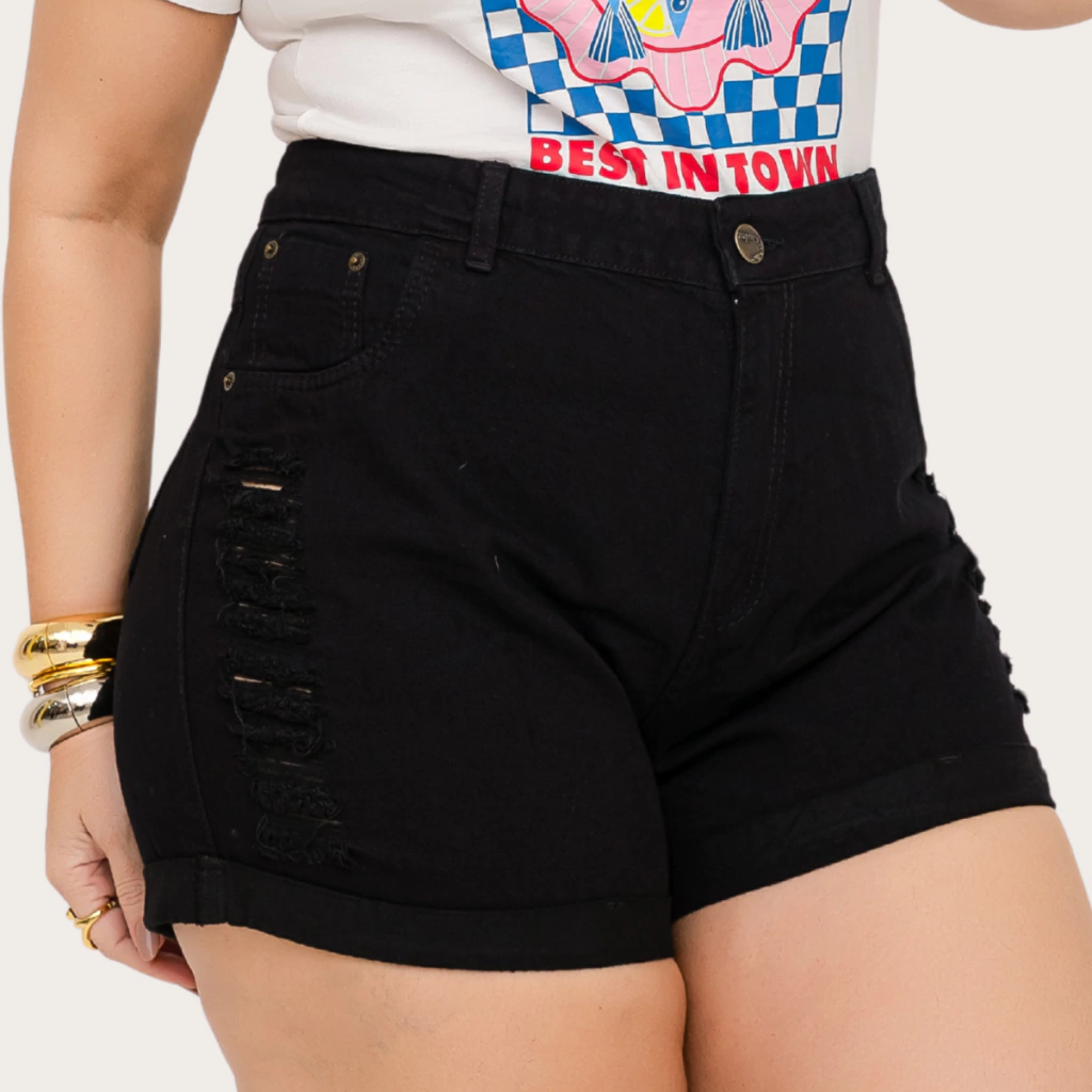 Perfeito para compor looks casuais ou despojados, o Short Jeans Feminino Plus Size Preto é uma escolha ideal para quem valoriza moda e praticidade. Adquira o seu e esteja sempre pronta para arrasar!