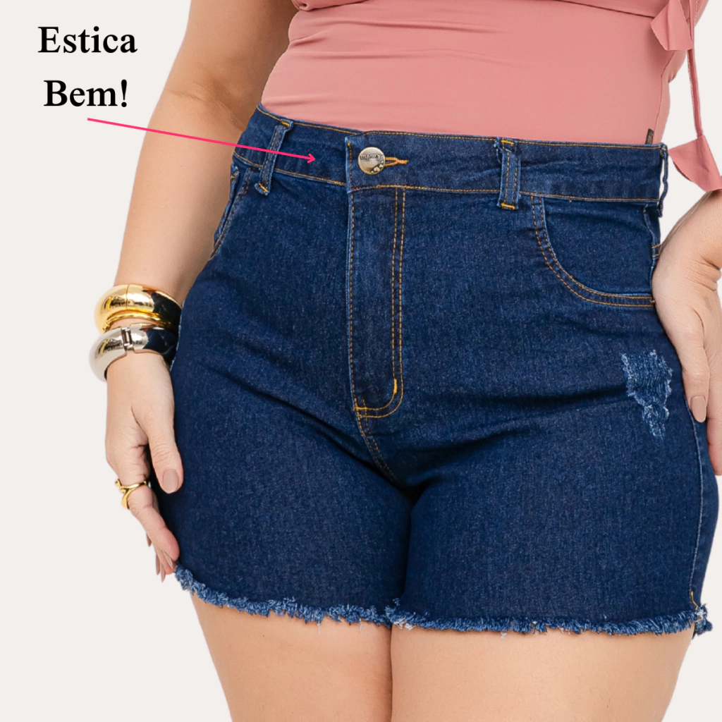Descrição do Produto: Short Jeans Feminino Plus Size Azul Escuro Barra Desfiada