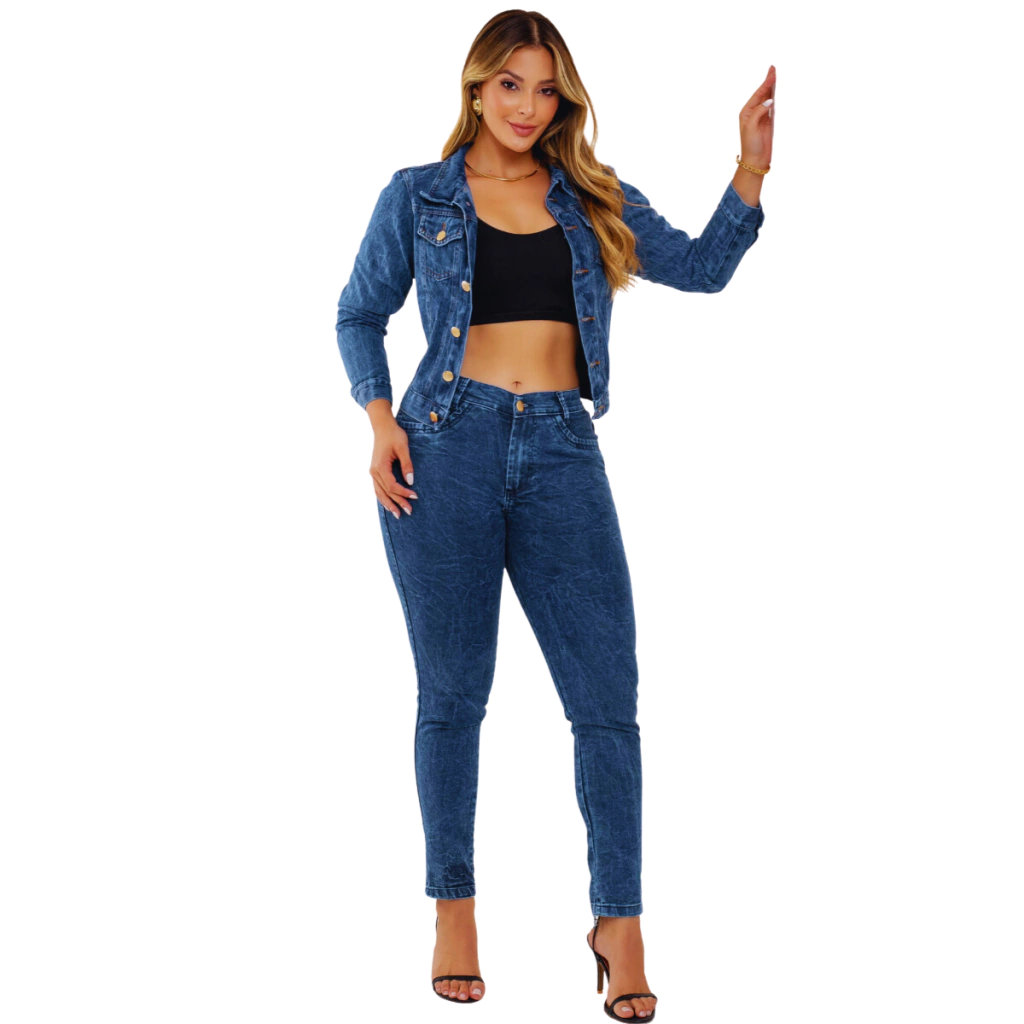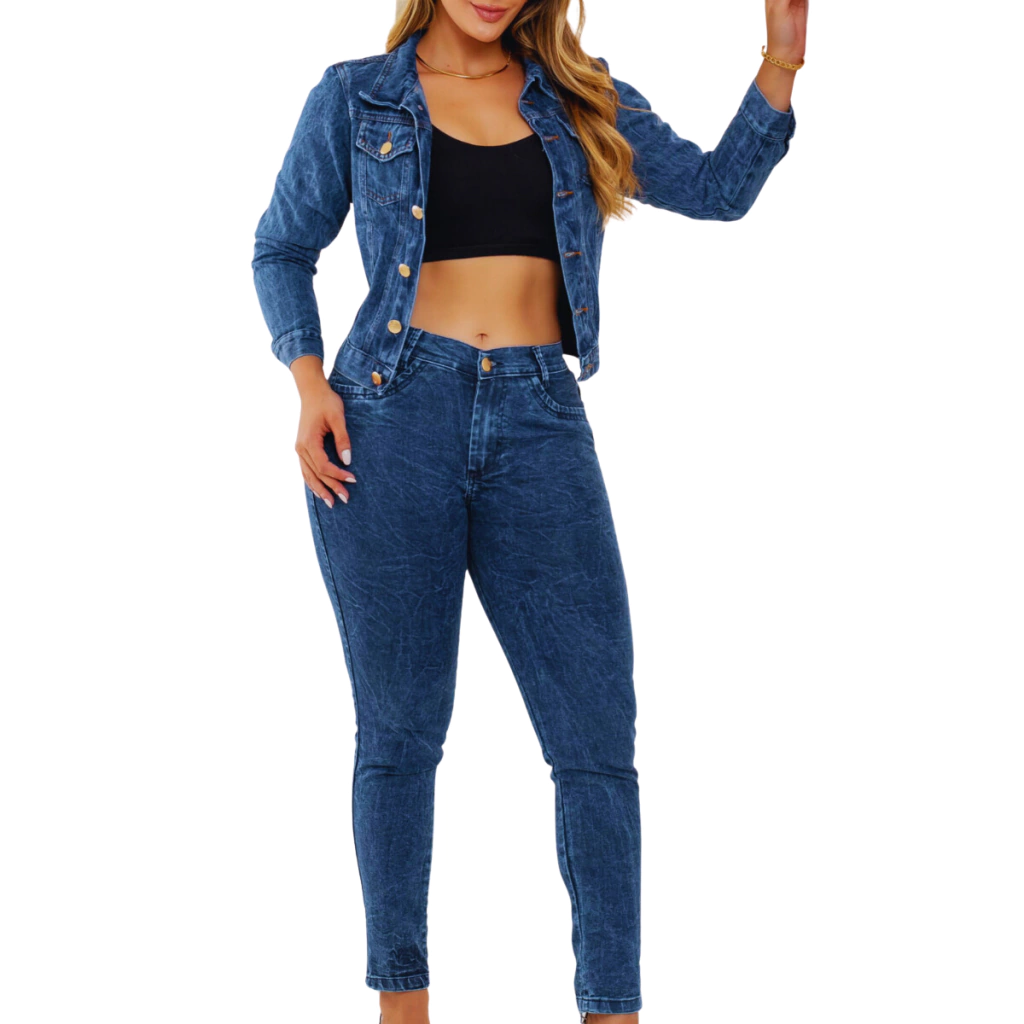 Conjunto Feminino Jeans Jaqueta e Calça, são especialmente desenvolvidas para Mulheres modernas e empoderadas. Com uma modelagem diferenciada que se ajusta ao corpo de maneira confortável.