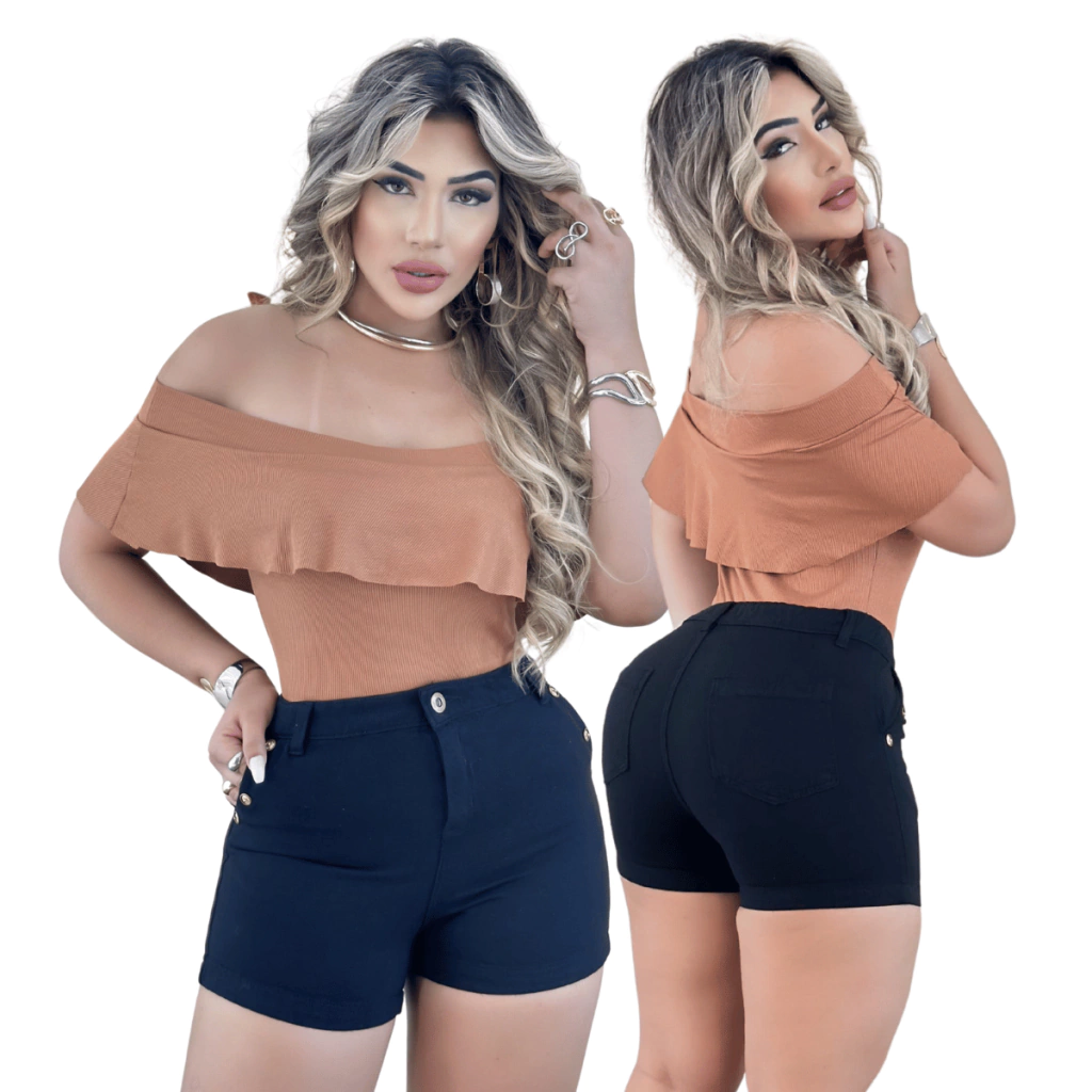 Descrição do Produto: Conjunto Body Estilo Cigana e Short Jeans Preto