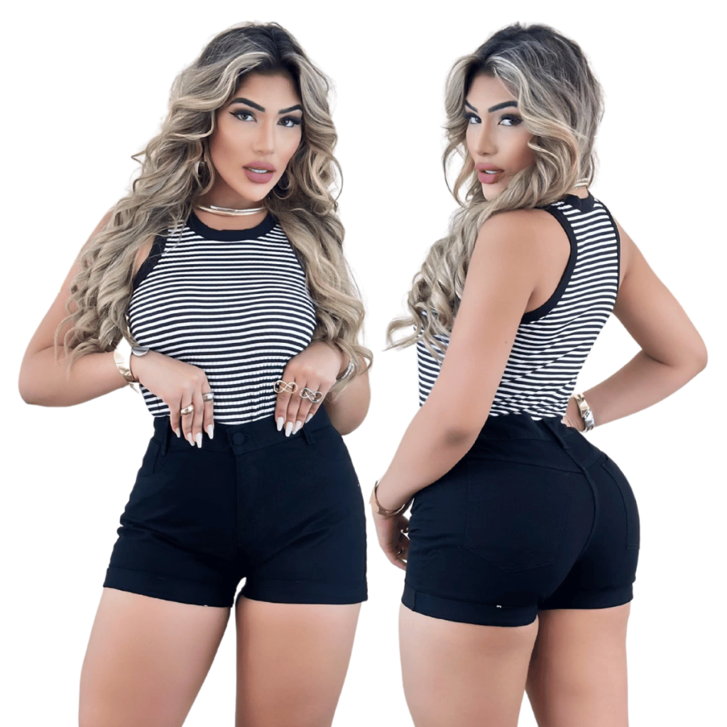 Renove seu estilo com o Conjunto Regatinha com Listras e Short Preto, composto por uma regata e um Short de cor preto que combinam elegância e modernidade. Fabricado com jeans de alta qualidade, este conjunto oferece conforto excepcional e um caimento impecável, ideal para diversas ocasiões.