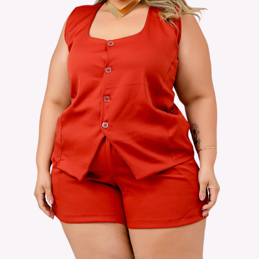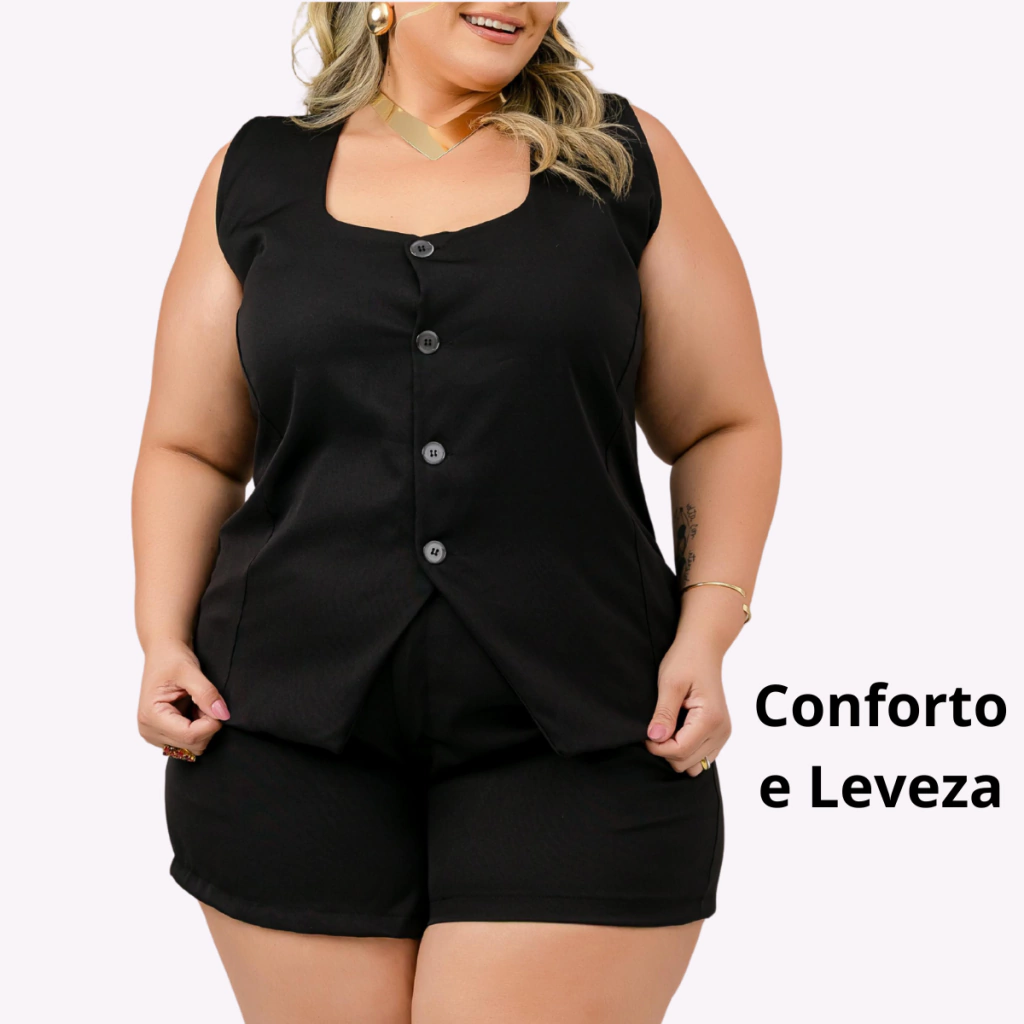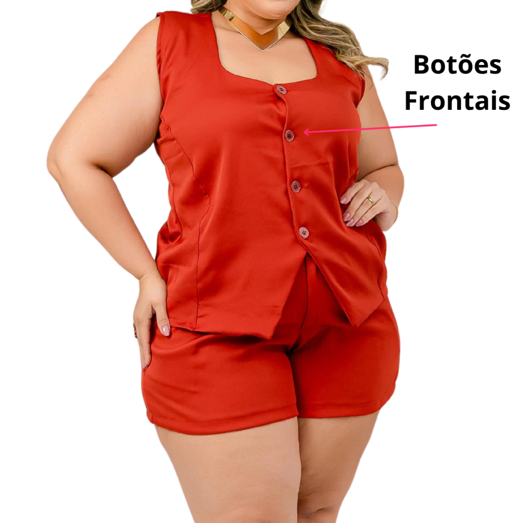 Perfeito para criar produções casuais, elegantes e despojadas, o Conjunto Feminino Regata com Botões Frontais e Short é indispensável no guarda-roupa de quem busca estilo aliado ao conforto.