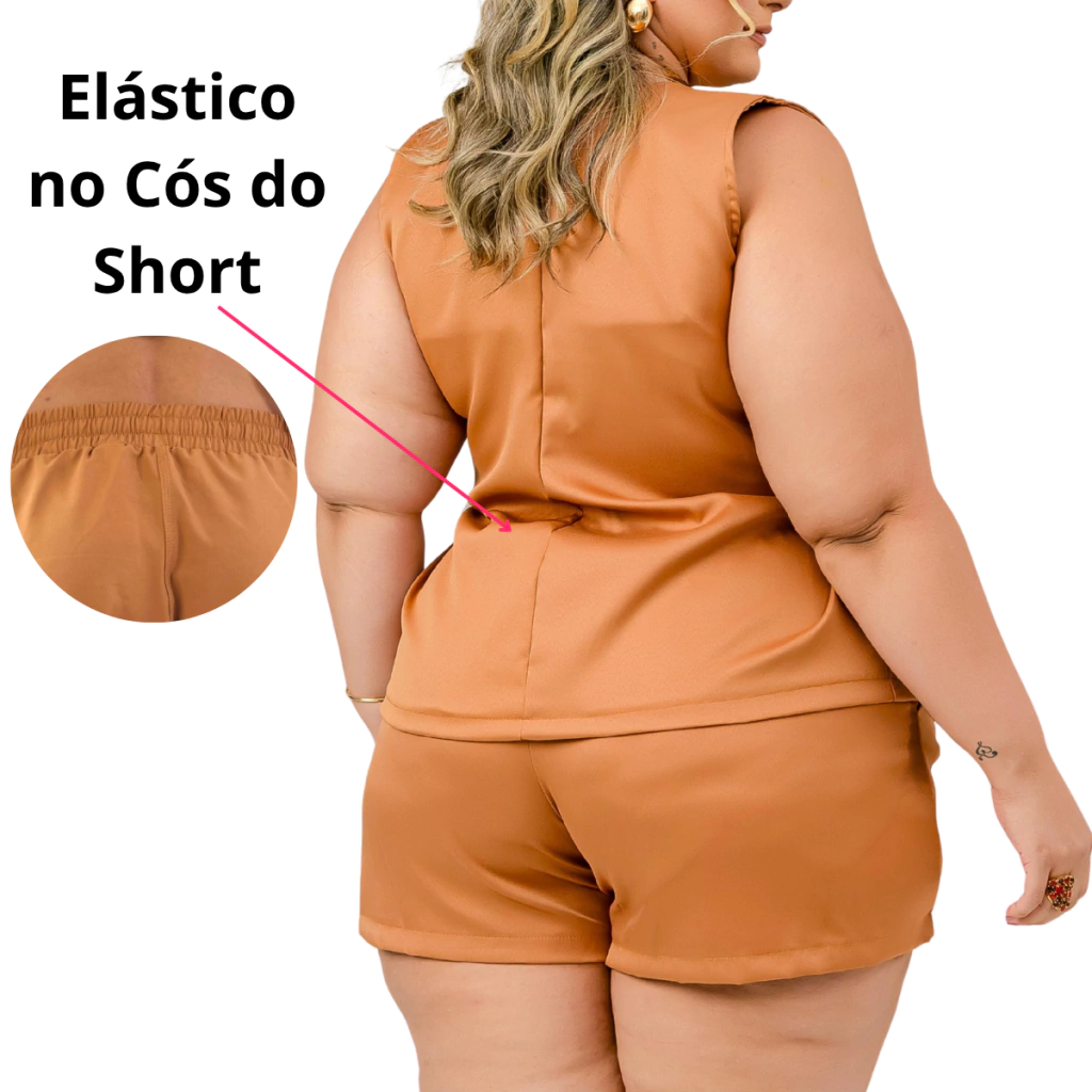 Short: Cintura alta com elástco traseiro com ajuste confortável garantindo mobilidade e liberdade de movimentos