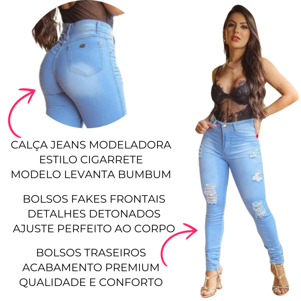Calça Feminina Levanta Bumbum Modeladora Clara Cintura Alta
