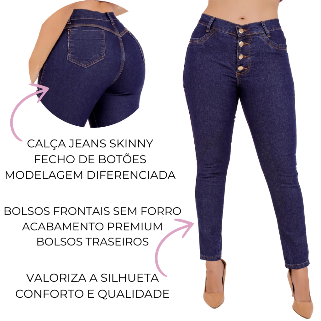 Calça Jeans Feminina Skinny Cintura Alta Com Lycra Escura é especialmente desenvolvida para Mulheres modernas e empoderadas. Com uma modelagem diferenciada que se ajusta ao corpo de maneira confortável.