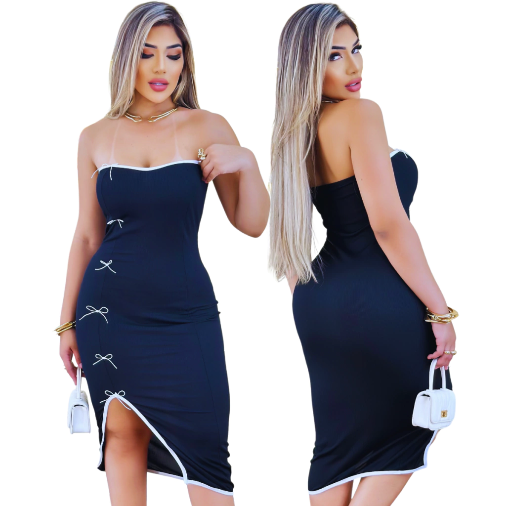 Detalhes: Decote ombro a ombro, cintura marcada e fenda lateral, adicionando um toque de charme que realça a beleza da peça.